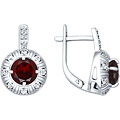 Серебряные сережки круглые SOKOLOV 92020917 с гранатами, фианитами