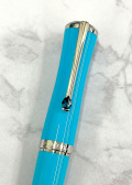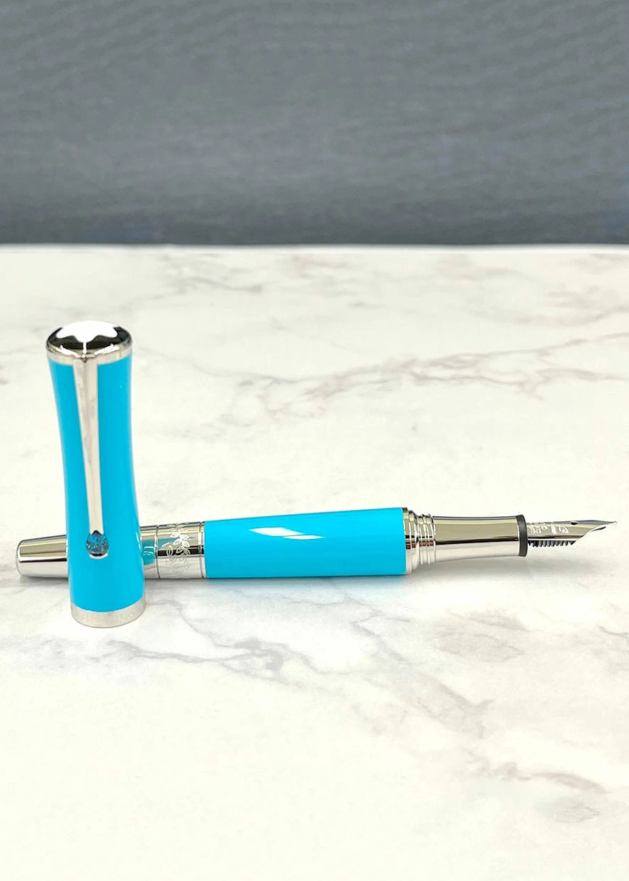 Бирюзовый цвет, один из любимых оттенков Марии Каллас, использован в драгоценной смоле колпачка и корпуса. Платиновый клип украшен камнем, напоминающим сияющую бирюзу Эгейского моря — дань её греческой родине.