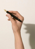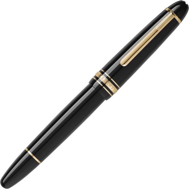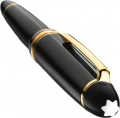 Колпачок и корпус ручки изготовлены из черной драгоценной смолы, верхняя часть колпачка уккрашена культовой эмблемой Montblanc. Зажим с золотистым покрытием и индивидуальным серийным номером.