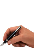 Ручка выполнена из синей драгоценной смолы. Съёмный завинчивающийся колпачок. Клип с платиновым покрытием.