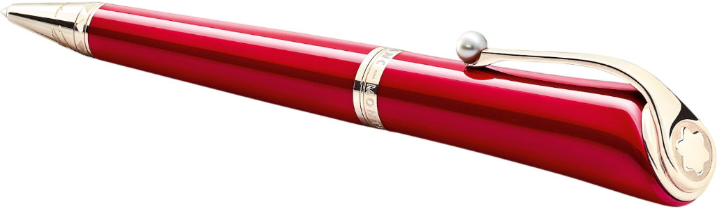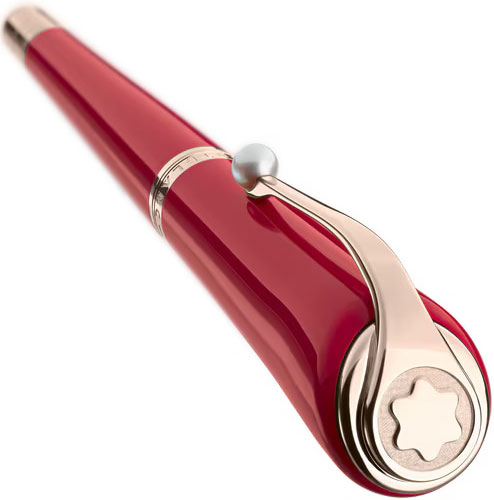 Дизайн ручки вдохновлен туфлями на высоком каблуке Ferragamo, которые носила Мэрилин, отражая ее женственность и чувственность. Цвет отсылает к ее фирменной помаде (Ruby Tuesday от Max Factor). Форма зажима с жемчугом напоминает о ее украшениях и любви к жемчугу.