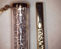 Корпус с хромированной отделкой и PVD покрытием цвета желтого золота. На конце ручки подвеска-амулет в виде глаза, украшенная кристаллами Swarovski.