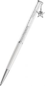 Корпус с хромированной отделкой и PVD покрытием цвета желтого золота. На конце ручки подвеска-амулет в виде глаза, украшенная кристаллами Swarovski.