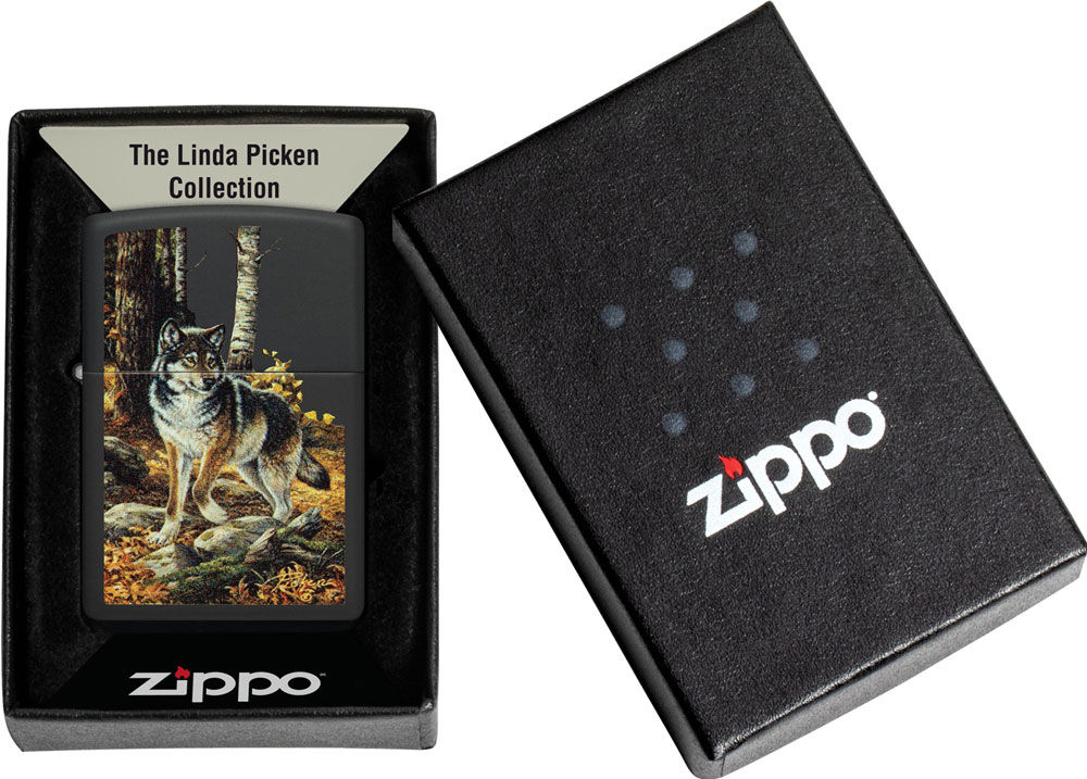 Металлический корпус с покрытием Black Matte. Надежная ветроустойчивая конструкция для многоразового использования. Характерный для Zippo «щелчок» при открытии и закрытии.