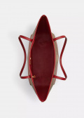 Сумка имеет две длинные ручки, дополненные кожаной подвеской с логотипом бренда.