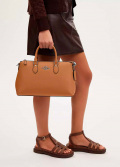 Сумка имеет две фиксированные ручки, дополненные кожаной подвеской с логотипом бренда, и регулируемый съемный ремень через плечо.