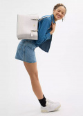 Сумка имеет две длинные ручки, дополненные кожаной подвеской с логотипом бренда.