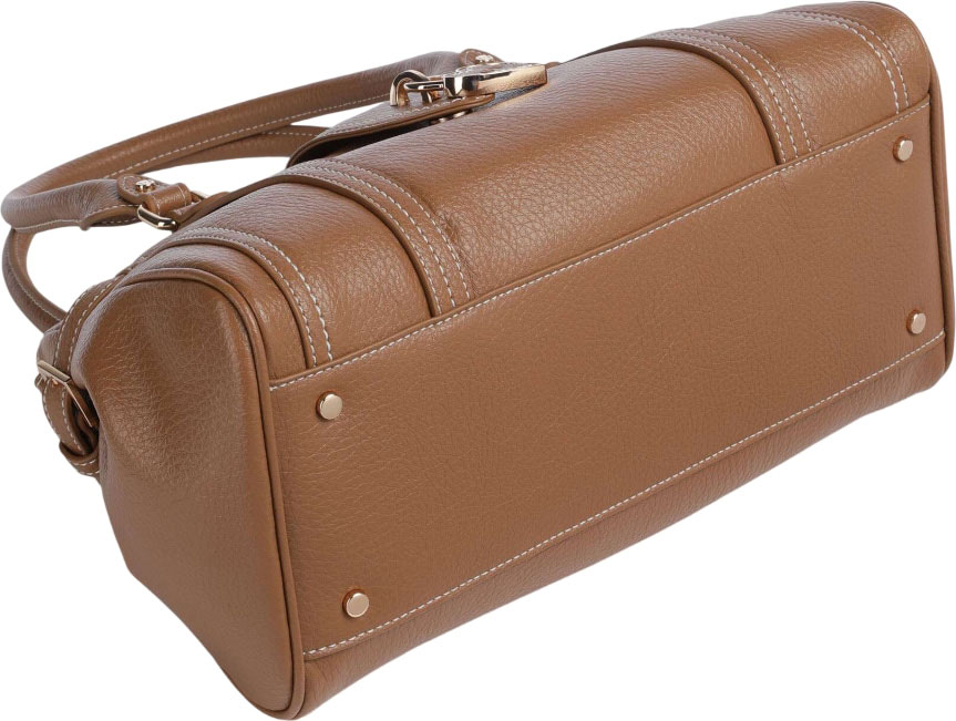 Две ручки и съемный регулируемый плечевой ремень. Полированная металлическая фурнитура золотистого цвета. Съемный кулон-замок в форме сердца.