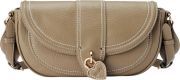Регулируемый плечевой ремень. Полированная металлическая фурнитура золотистого цвета. Съемный кулон-замок в форме сердца.