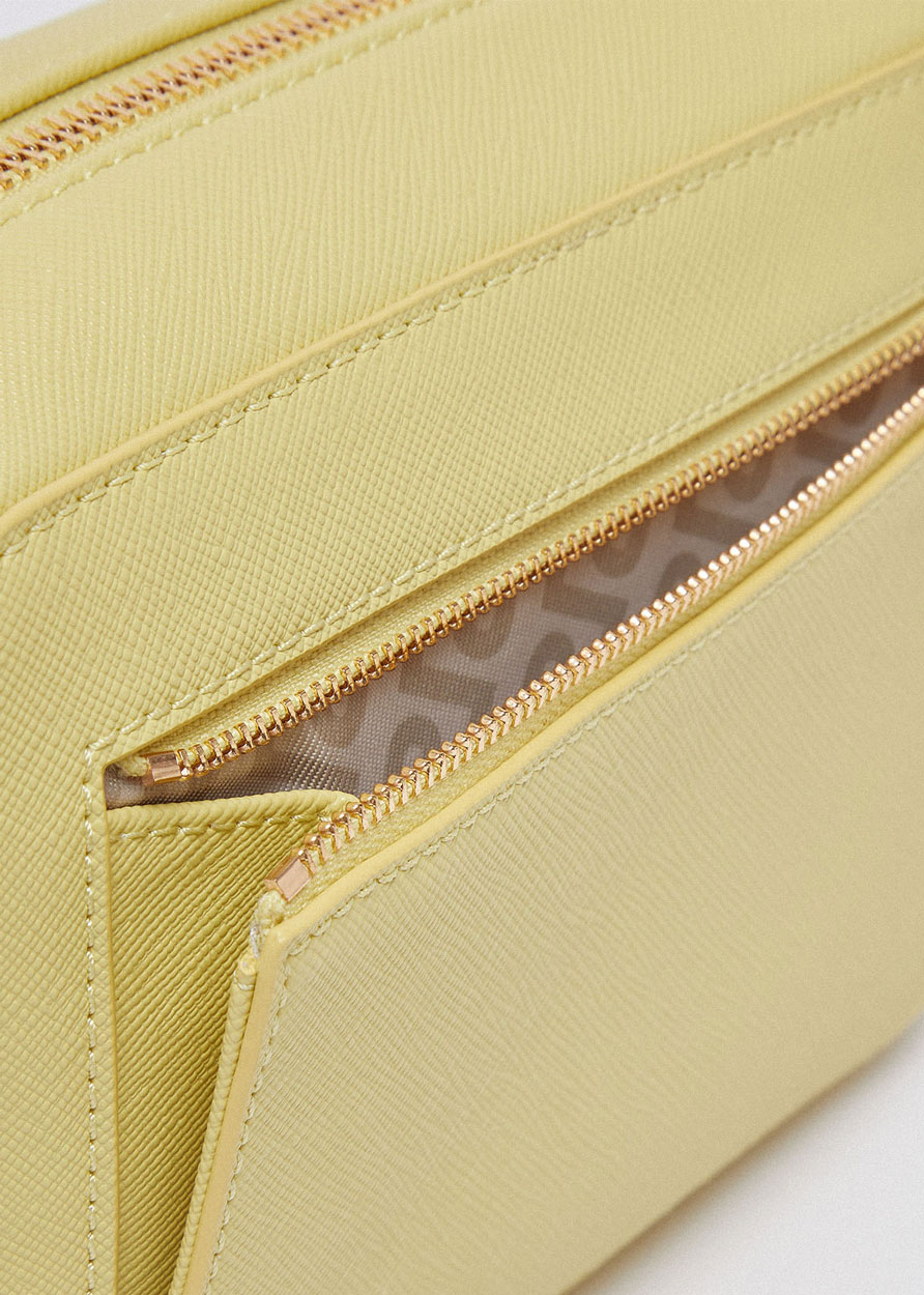 Съемный регулируемый плечевой ремень. Полированная металлическая фурнитура золотистого цвета.