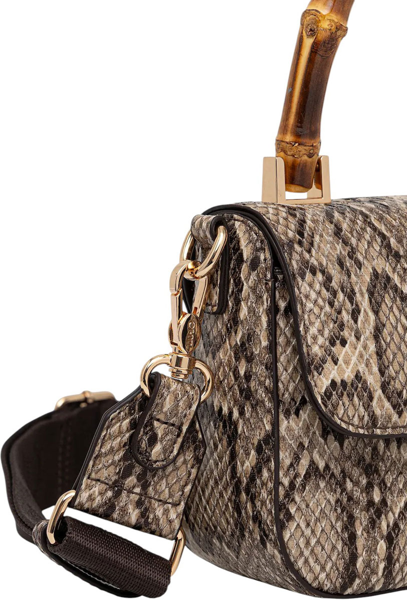 Ручка из натурального бамбука и съемный регулируемый плечевой ремень.