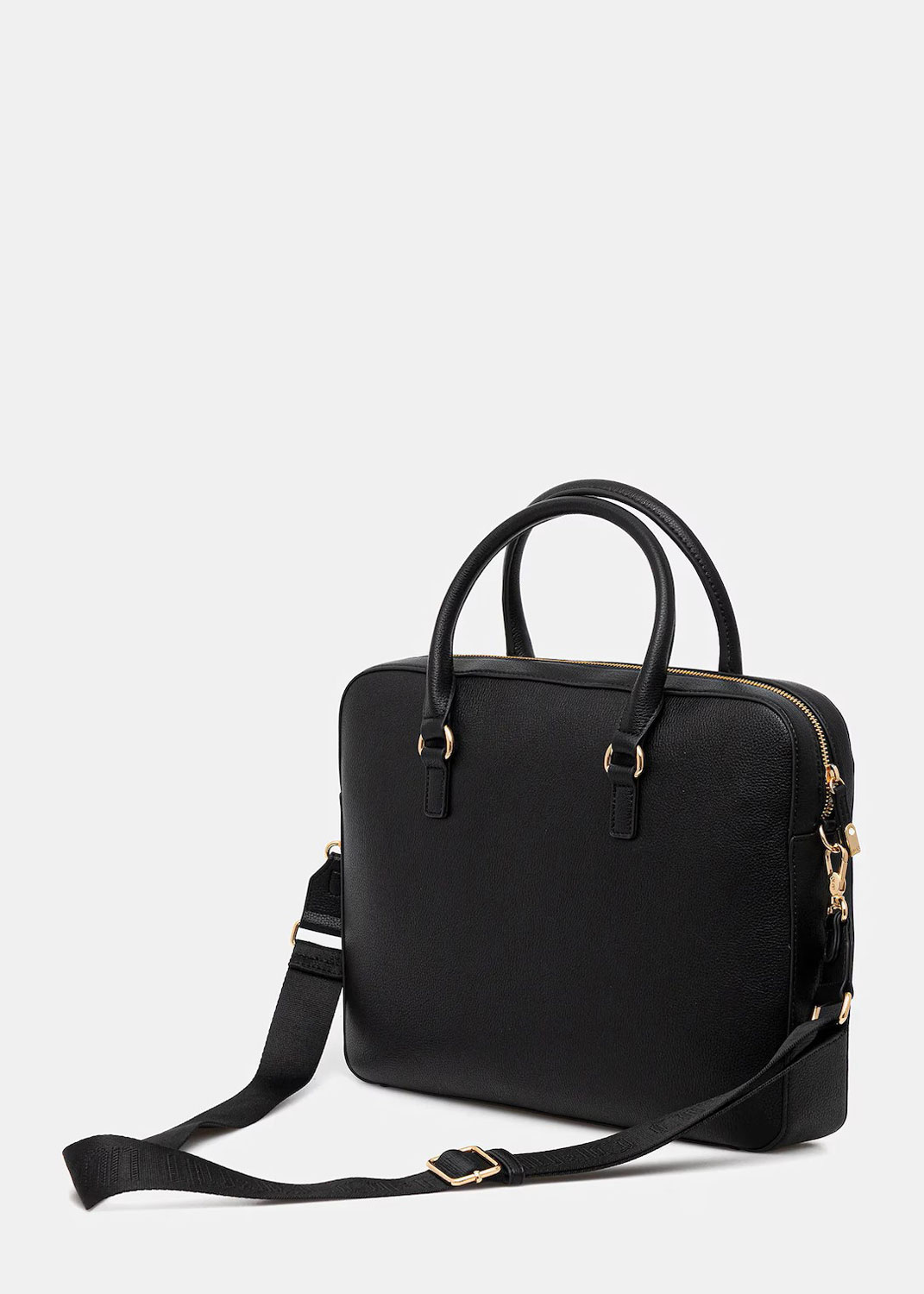 Две короткие ручки и съемный регулируемый плечевой ремень. Фурнитура золотистого цвета.
