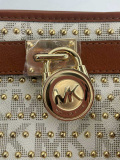 Женская сумка Hamilton Studded. Изготовлена из прочного холста с покрытием, украшена заклепками и логотипом бренда МК. Две удобные ручки. Закрывается на кнопку. Внутри: вместительное основное отделение, накладные карманы. В комплекте плечевой ремешок.