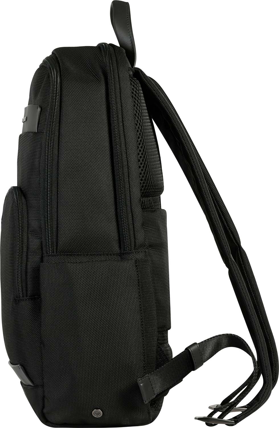 Снаружи: карман на молнии на передней стенке, боковой карман для бутылки и зонта.