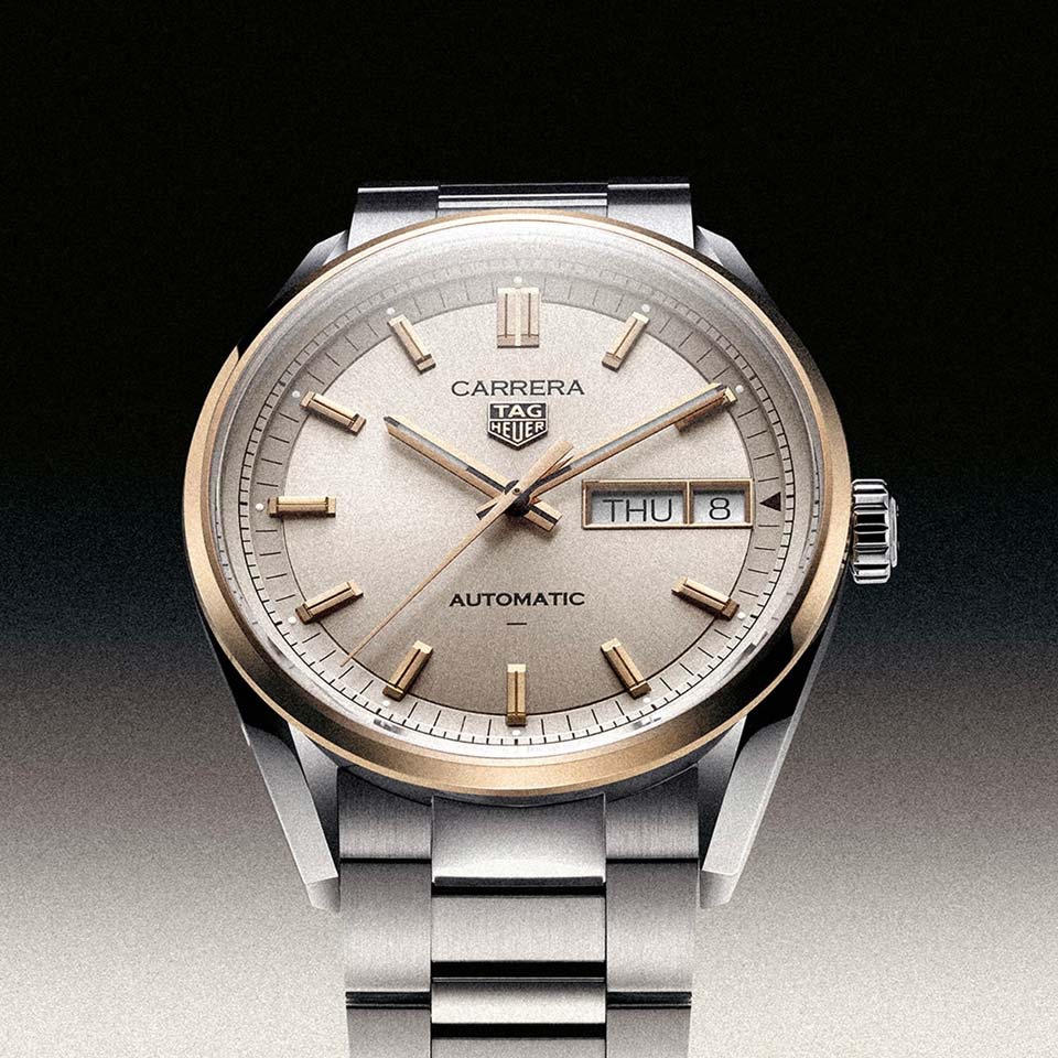 Швейцарская часовая компания пополнила коллекцию TAG Heuer Carrera Day-Date сразу тремя элегантными моделями. Помимо универсальных размеров (диаметр корпуса из стали — 41 мм), новинки отличает привлекательное цветовое оформление. Доступны варианты с глубоким синим или изумрудно-зелёным циферблатом, а также драгоценная версия с циферблатом в цвете шампань, который эффектно подчёркивают безель, стрелки и метки из розового золота.