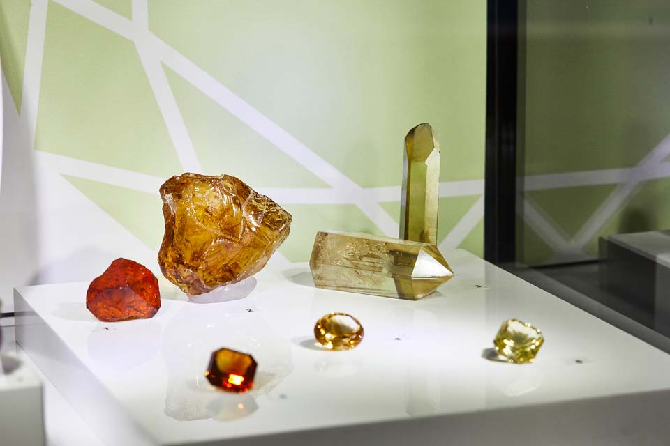 Тематические витрины с турмалинами, бериллами, гранатами, кварцем и другими минералами содержат информацию про каждый конкретный минеральный вид. В витринах представлены коллекционные образцы кристаллов, ограненные камни, а также геммологическое и ограночное оборудование, эскизы и готовые ювелирные украшения. Задача выставки — показать широкому кругу посетителей, как сырой материал, пройдя непростой путь, превращается в настоящее произведение ювелирного искусства.