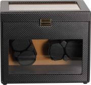 Заводная шкатулка со стеклянной крышкой на ключ. Внутри: 4 подушечки для подзавода часов, 6 подушечек для хранения, отделения для украшений и валики для колец или запонок. Режимы вращения: по часовой стрелке, против часовой стрелки и смешанные режимы. Светодиодная подсветка. Питание от сети.