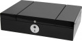 Шкатулка для украшений. Внутри отделение для украшений, валики для колец или сережек и подушечки для хранения часов. На крышке - зеркало. Закрывается на электронный замок.