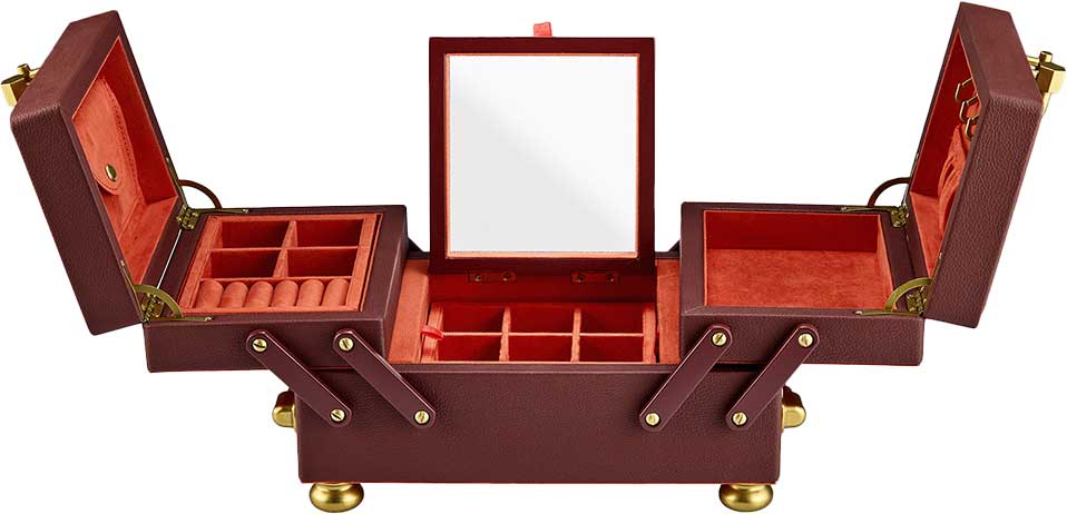 Шкатулки Wolf для украшений часто имеют запатентованную подкладку LusterLoc™, которая абсорбирует агрессивные газы, вызывающие потускнение — ценное свойство для сохранения первозданного блеска металлов на долгие годы. Внутреннее пространство тщательно организовано: специальные валики для колец, отсеки для серег и браслетов, крючки для цепочек предотвращают повреждения и спутывание.