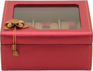Amira. Коробка для 6 часов cо стеклянной крышкой. Декорирована аппликацией с цветком.