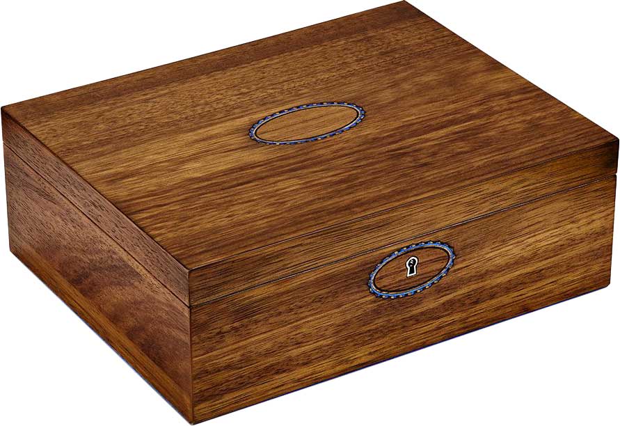 Изготовлена из сертифицированного FSC орехового шпона. Внутри: 8 отделений для украшений, одно из которых вынимающееся. Верхняя крышка с зеркалом украшена эксклюзивной вышивкой из балета «Лебединое озеро» от Фионы Ховард.