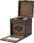 В верхней части шкатулки находится отделение с 2-мя подушечками для часов и дополнительным съемным отделением на молнии. Внутренняя отделка - переработанный жаккардовый шелк с фирменным узором «Wolf». Питание от сети. Закрывается на ключ.