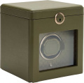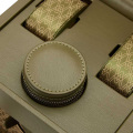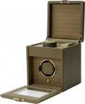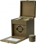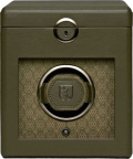 В верхней части шкатулки находится отделение с 2-мя подушечками для часов и дополнительным съемным отделением на молнии. Внутренняя отделка - переработанный жаккардовый шелк с фирменным узором «Wolf». Питание от сети. Закрывается на ключ.