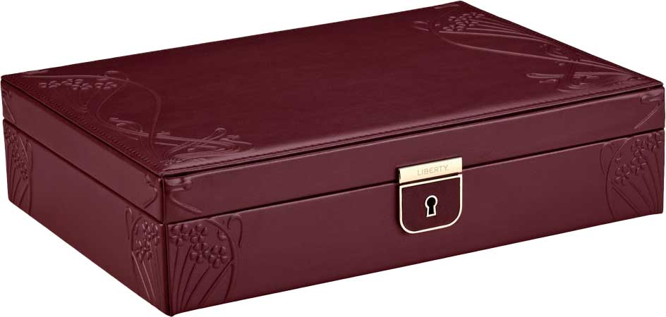 Внутри: 6 отделений для украшений и 4 валика для колец. На верхней крышке зеркало. Внутреннее покрытие из искусственной замши с технологией LusterLoc, которое предотвращает потускнение ювелирных изделий. Закрывается на ключ.