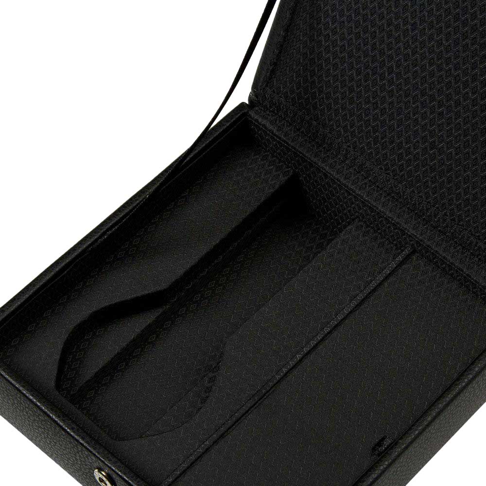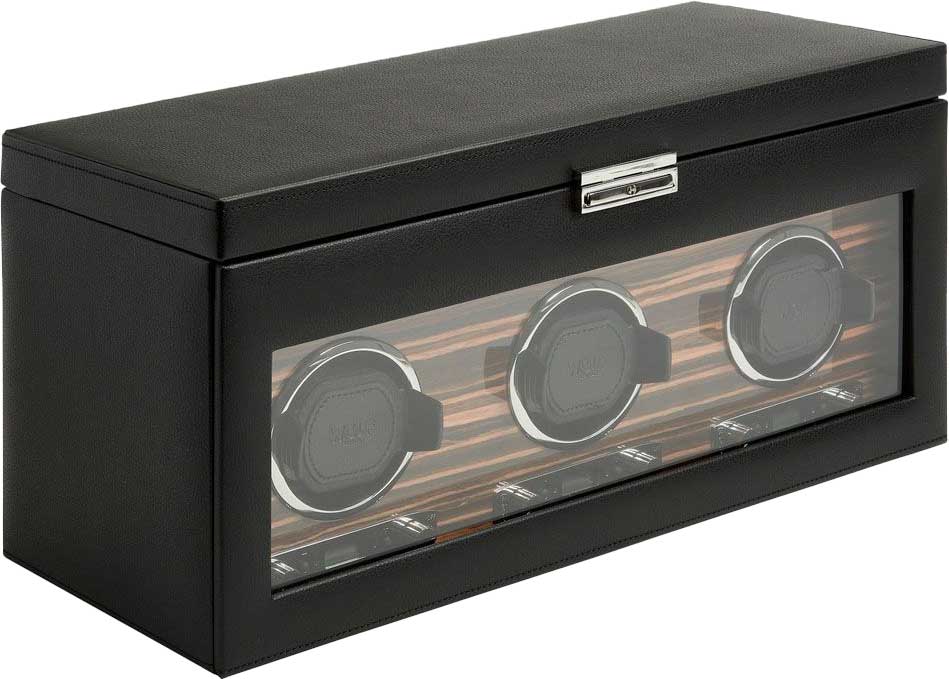 В верхней части шкатулки находится отделение с 5-ю подушечками для часов и дорожный футляр для часов и аксессуаров. Питание от сети или батареек (тип D).