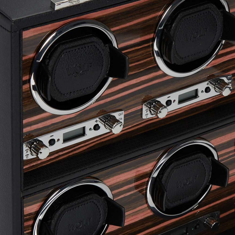 Режимы вращения: по/против часовой стрелки и двунаправленный режим, скорость вращения от 300 до 1200 оборотов в сутки. 10-секундная задержка запуска. Настройка запаса хода: от 6 до 72 часов с шагом в 6 часов дает часам время для высвобождения накопленной энергии до начала программы подзавода. Питание от сети.