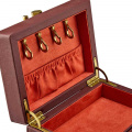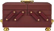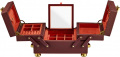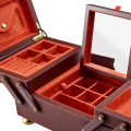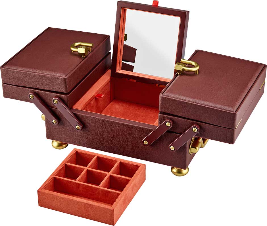 Внутри: отделения для украшений, валики для колец, крючки для цепочек, открытый карман, 2 скрытых отделения, карман на кнопке и складное зеркало.