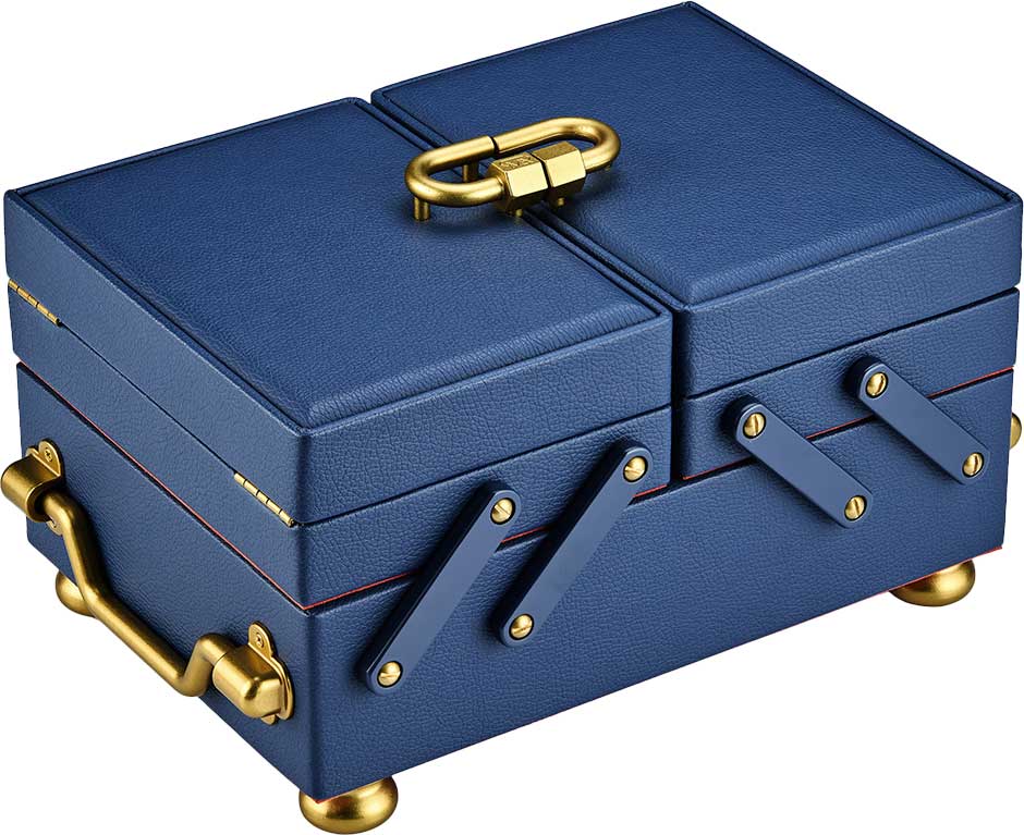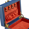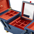 Внутри: отделения для украшений, валики для колец, крючки для цепочек, открытый карман, 2 скрытых отделения, карман на кнопке и складное зеркало.