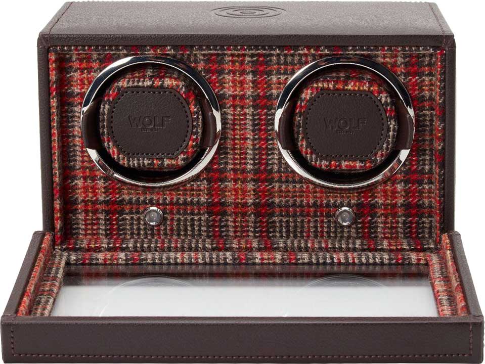 Заводная шкатулка для 2-х часов с запатентованной технологией, которая подсчитывает точное количество оборотов. Запатентованная система надежно фиксирует часы в вращающемся барабане.