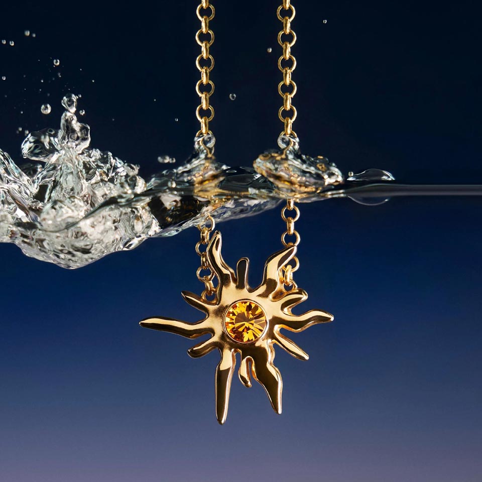 Подвеска ''Soleil Aurore'' из коллекции Couture. Изделие выполнено из латуни с кристаллом. В комплекте цепь плетения ролло. Круглая застежка. Регулируемая длина.
