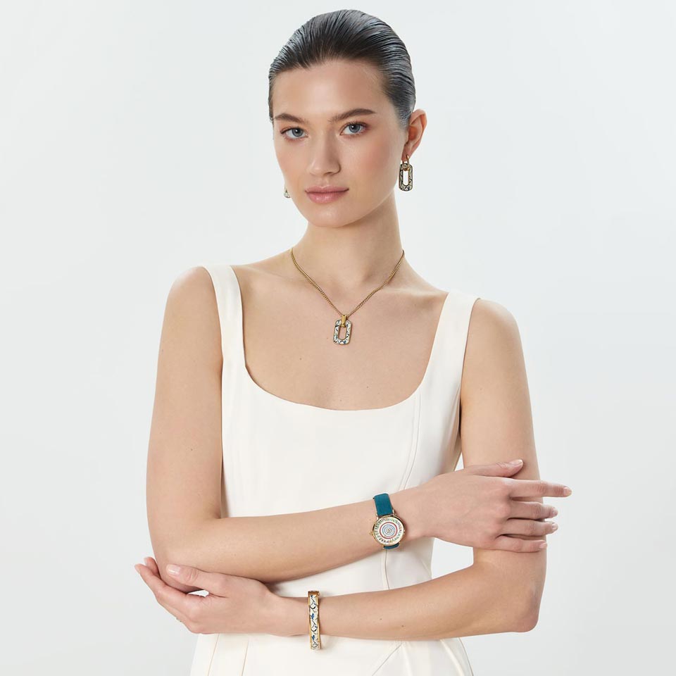 Ассортимент бренда включает кольца, серьги, ожерелья, браслеты и часы, которые можно сочетать по настроению – многослойно или акцентно. Элегантность соединяется с цветом и формой: лаковые покрытия, яркие принты и оттенки сезона создают образ, полный характера и света. Геометрические и цветочные мотивы оживают на ремешках, циферблатах и подвесках, превращая аксессуары в маленькие произведения искусства. Такие часы и украшения отлично подойдут как для повседневного образа, так и станут дополнением на романтическом ужине, а также послужат прекрасным подарком.