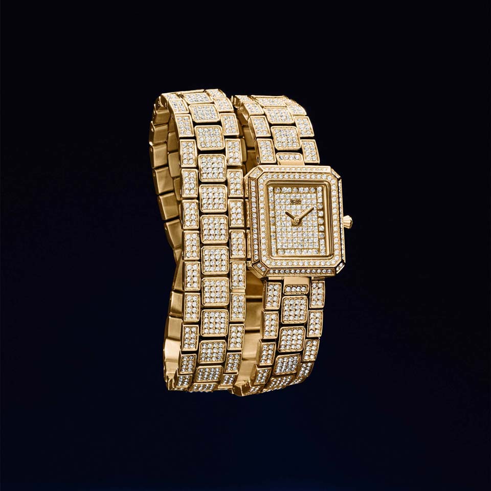 Часы Arc имеют прямоугольный корпус 23 x 25 мм в форме драгоценного камня, увенчанный безелем, инкрустированным кристаллами. Двенадцать настоящих бриллиантов подчеркивают каждый час на циферблате с отделкой «солнечные лучи», элегантно обрамленном трёхзвенным браслетом и щедро украшенном сверкающими кристаллами.