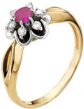 Золотое кольцо Алькор 11104-103 с рубином, бриллиантами