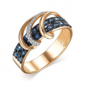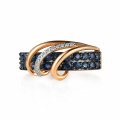 Кольцо из красного золота 585 пробы. Вставки: 22 Сапфир Круг 0,778 2,0 2/2, 12 Бриллиант Круг 17 0,037 200-400 2/3А