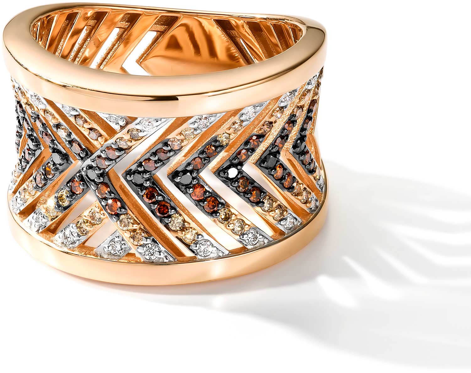 Золотое кольцо Алькор 15592-118 с черными бриллиантами, коньячными бриллиантами, бриллиантами