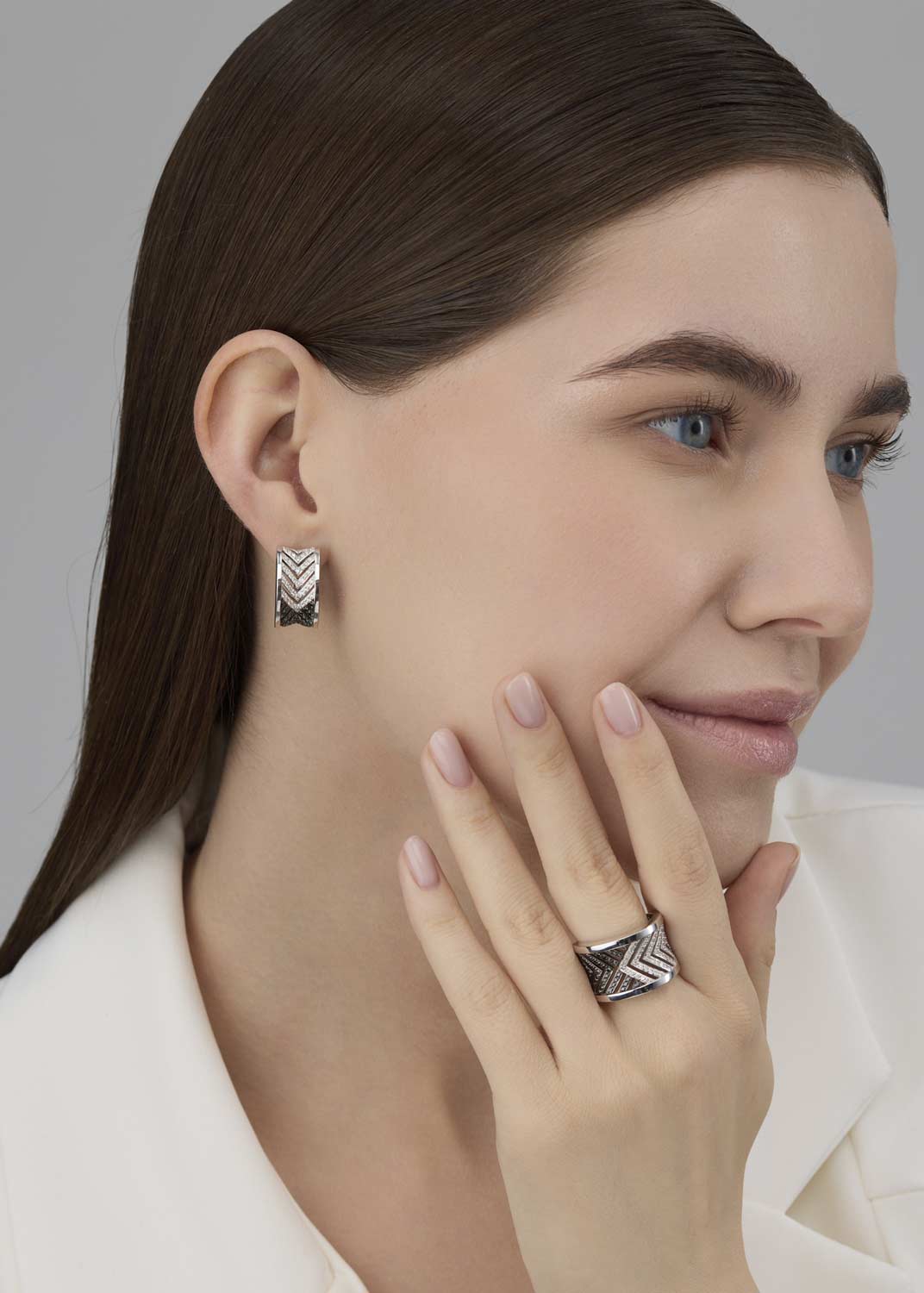 - бриллиант черный в 57 граней - 47шт. - 0,298К, чистота камня 7/6A (цвет, качество), бриллиант в 57 граней - 64шт. - 0,353К, чистота камня 4/5A (цвет, качество)