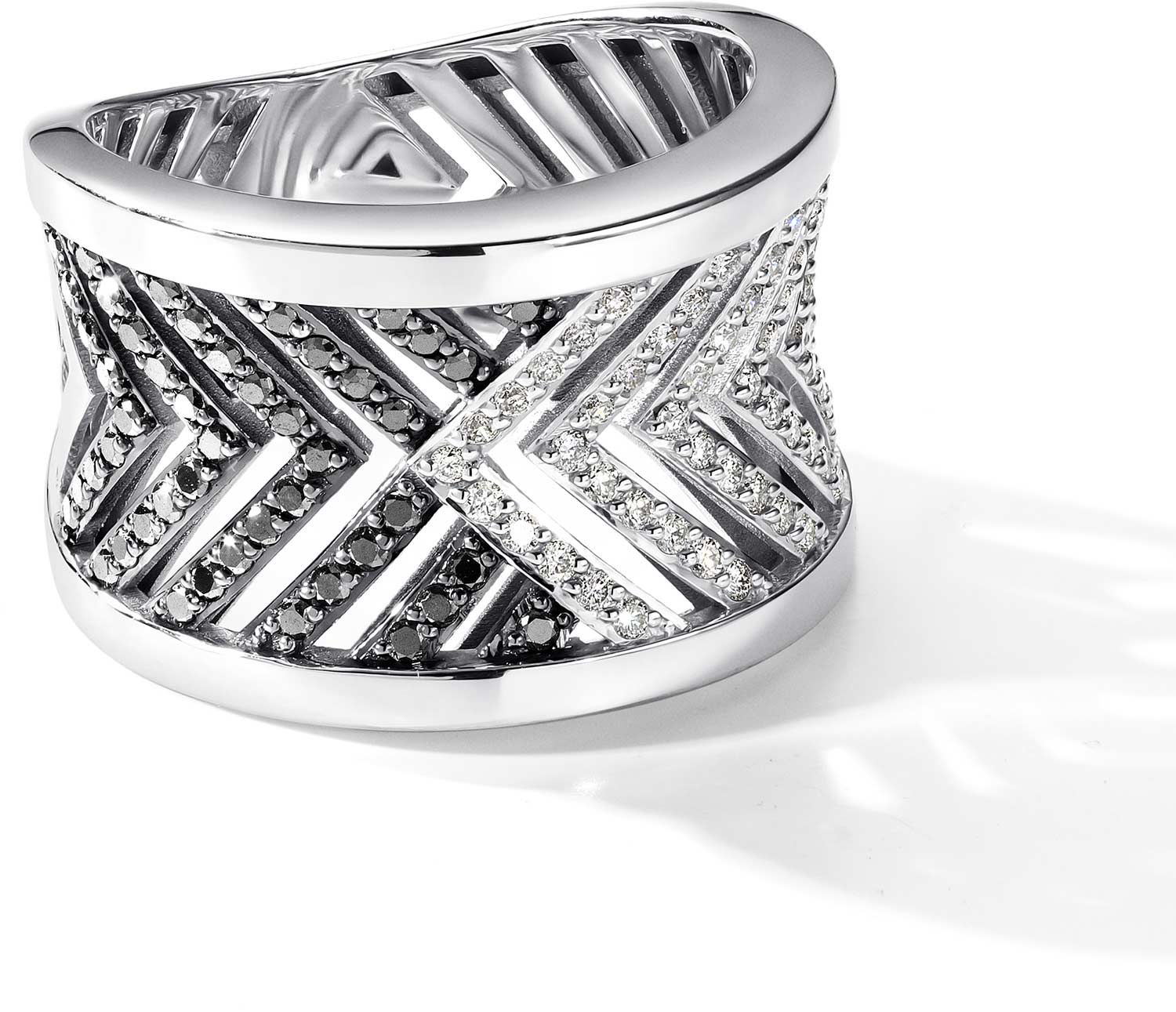 Кольцо из белого золота Алькор 15592-213 с черными бриллиантами, бриллиантами