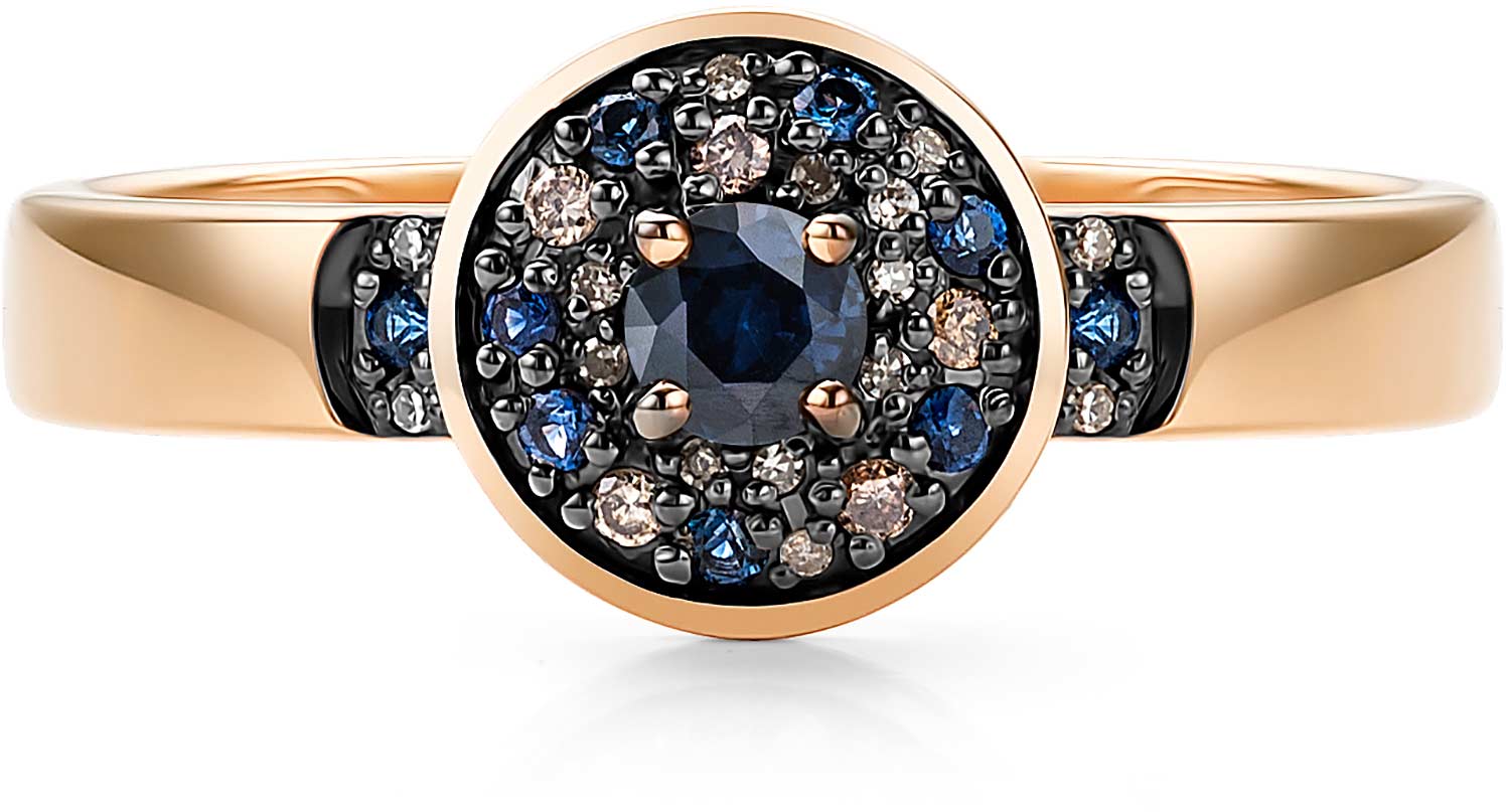 Золотое кольцо Алькор 15754-170 с сапфиром, коньячными бриллиантами, бриллиантами