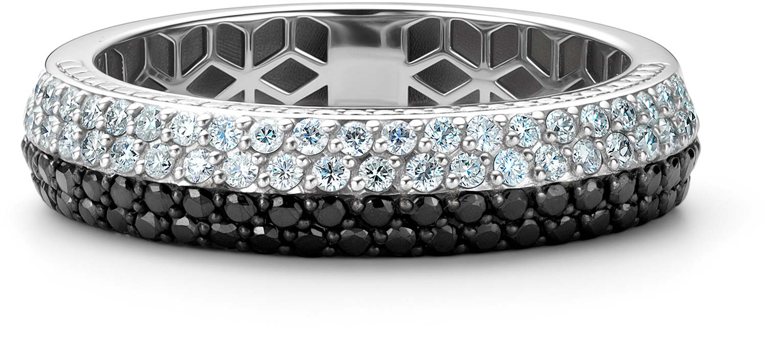 Кольцо из белого золота Алькор 15842-213 с черными бриллиантами, бриллиантами