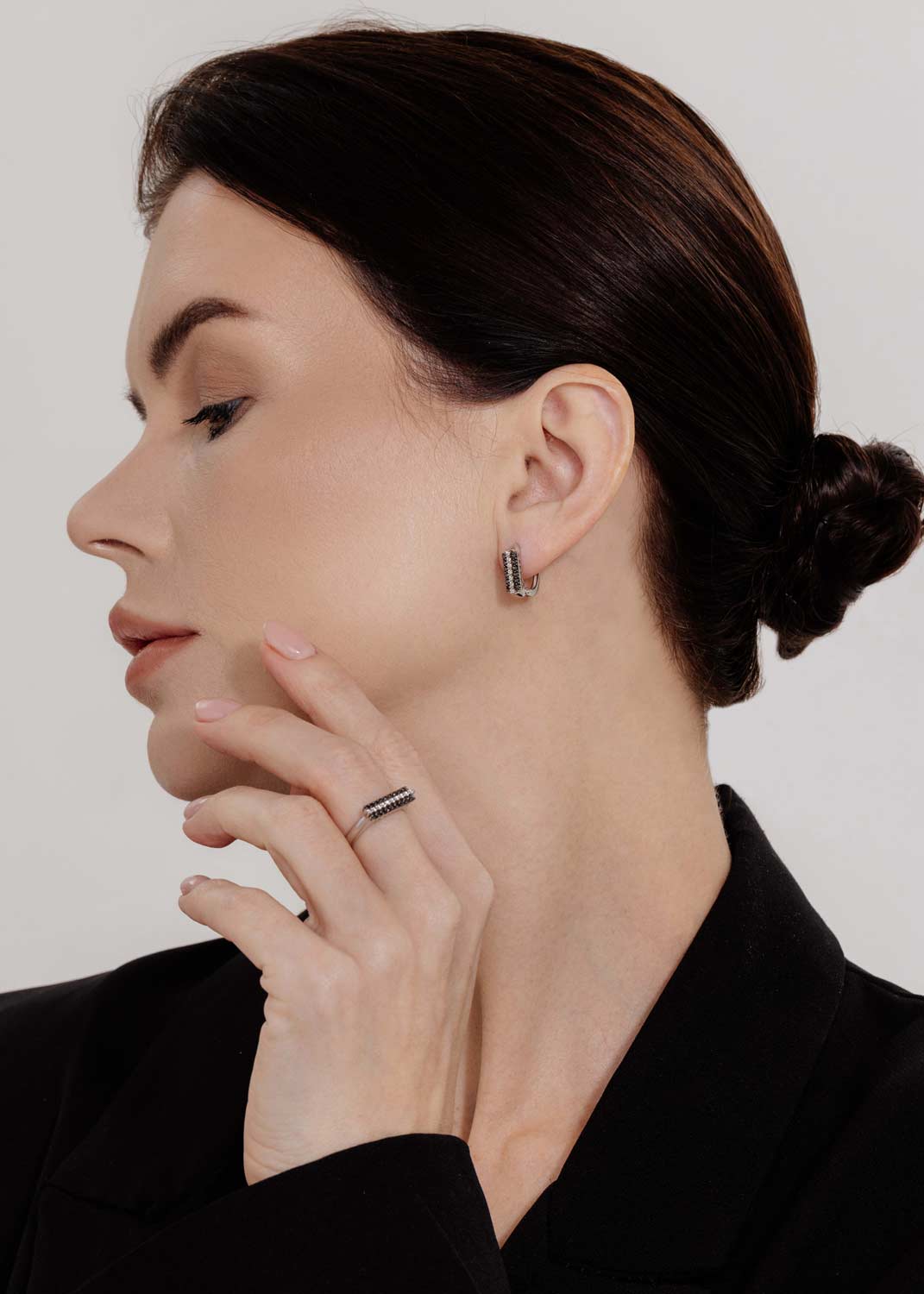 - бриллиант черный в 57 граней - 18шт. - 0,197К, чистота камня 7/6A (цвет, качество), бриллиант в 57 граней - 10шт. - 0,09К, чистота камня 4/5A (цвет, качество)
