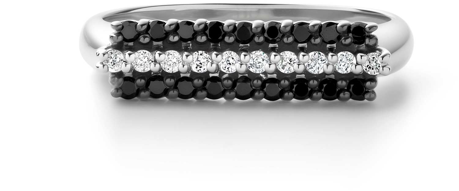 Фото «Кольцо из белого золота Алькор 16006-213 с черными бриллиантами, бриллиантами»