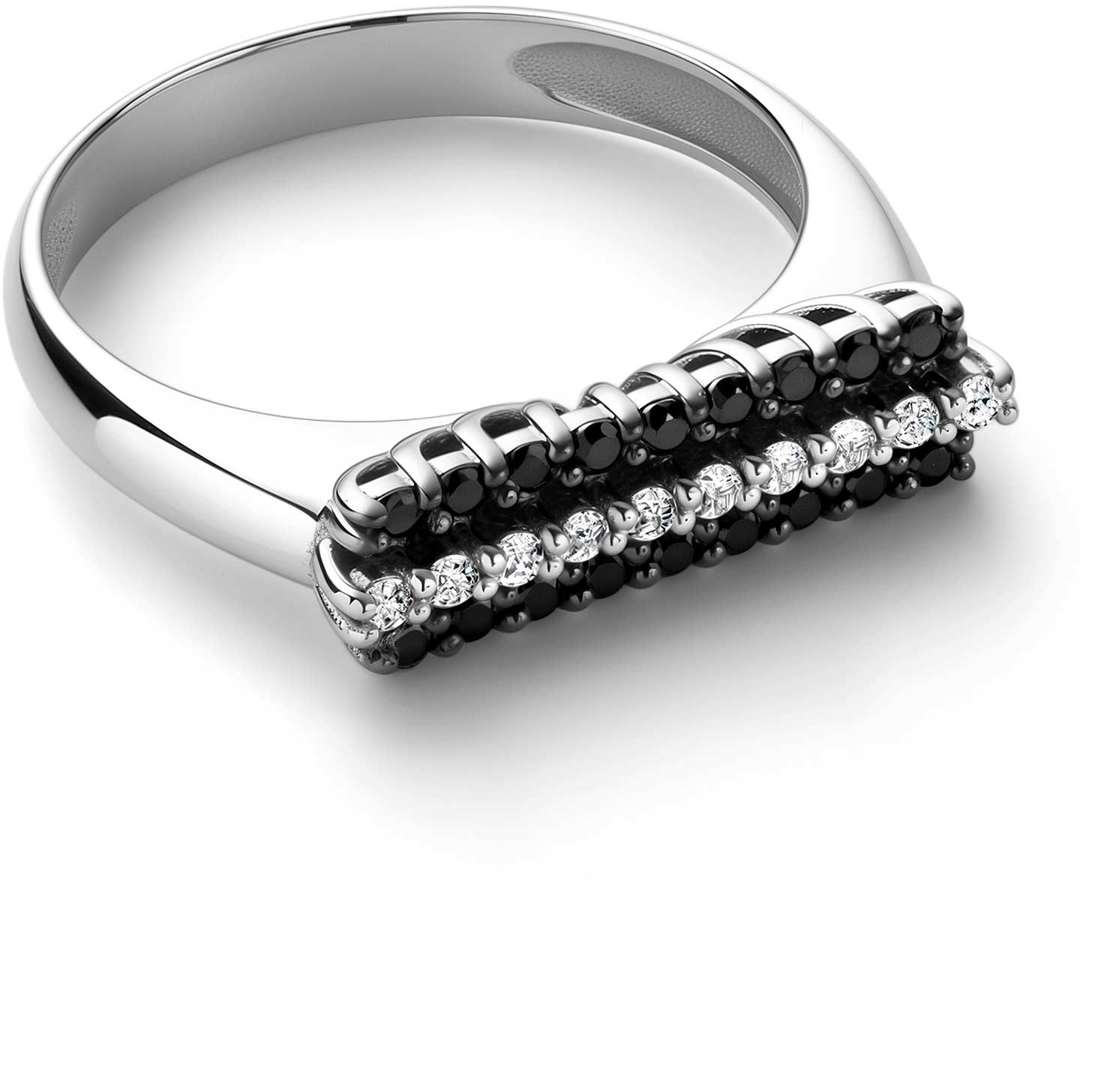 Кольцо из белого золота Алькор 16006-213 с черными бриллиантами, бриллиантами