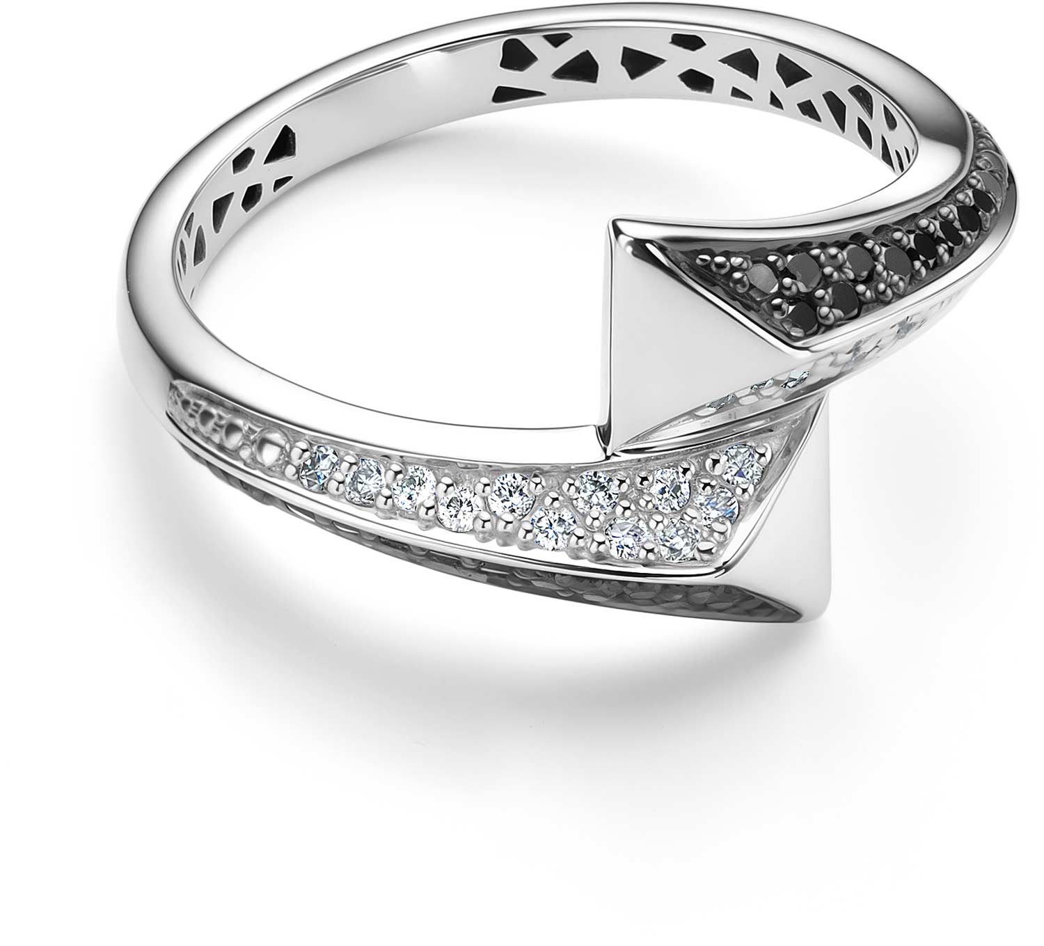 Кольцо из белого золота Алькор 16211-213 с черными бриллиантами, бриллиантами