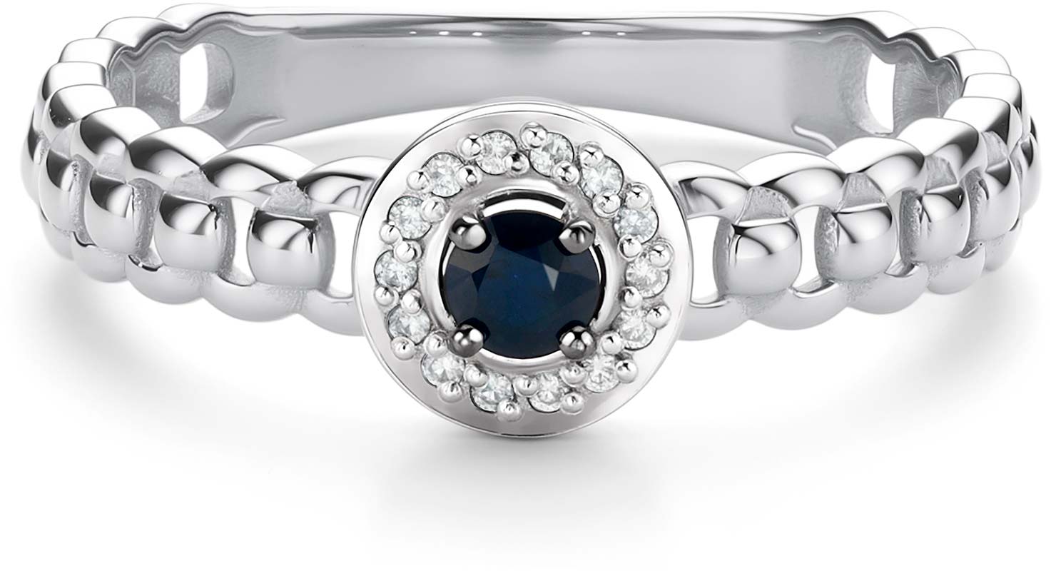 Кольцо из белого золота Алькор 16377-202 с сапфиром, бриллиантами