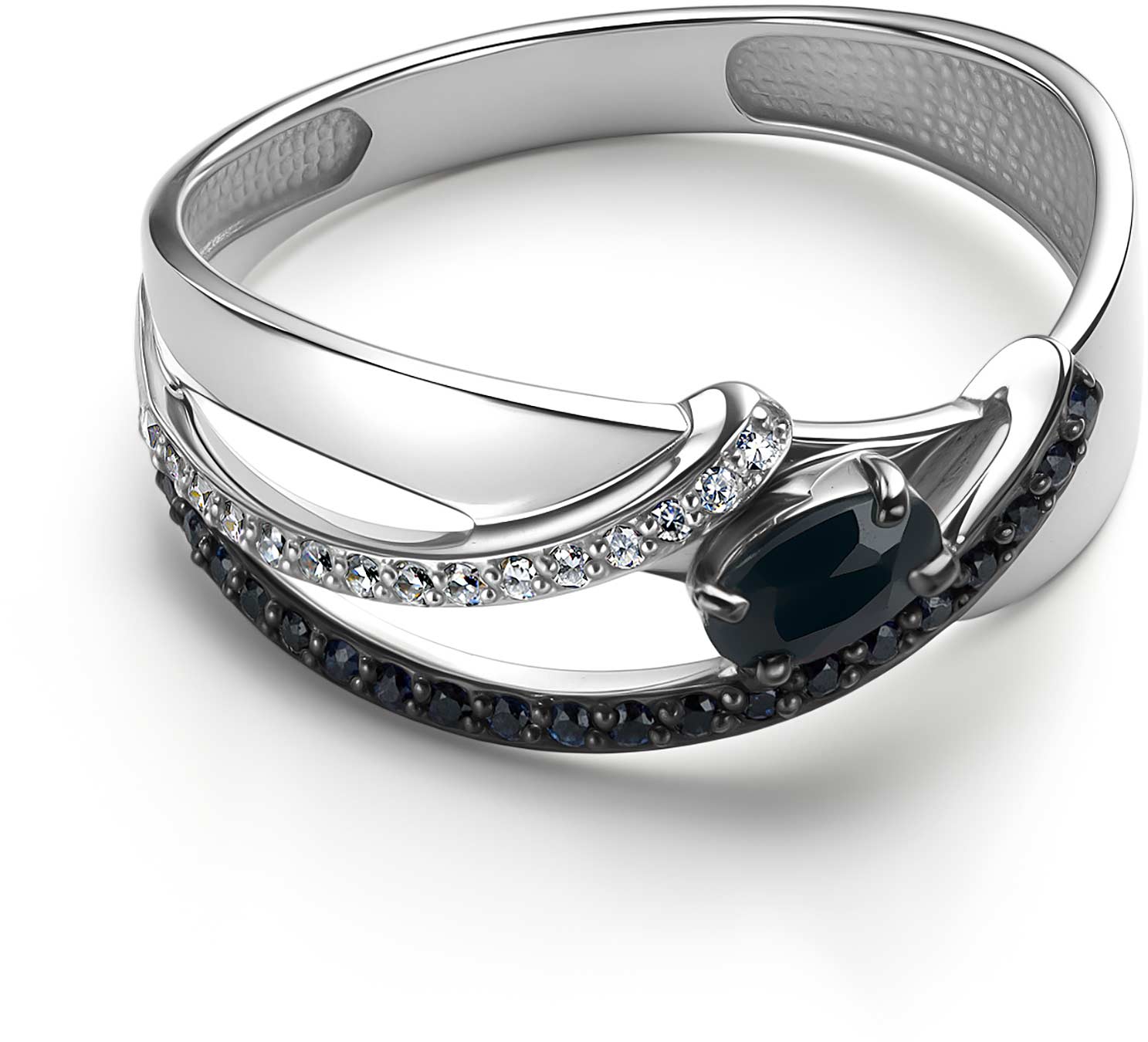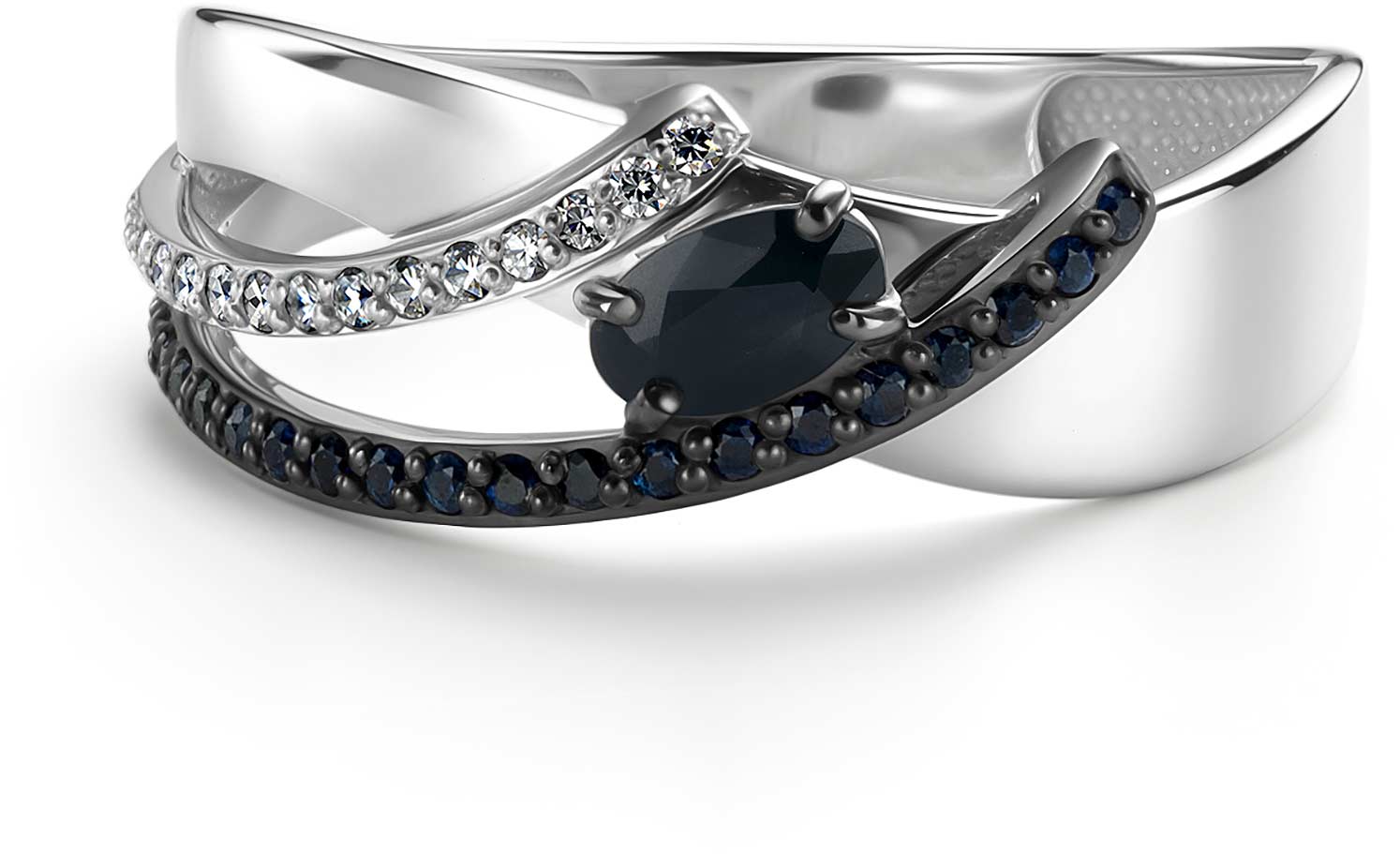 Кольцо из белого золота Алькор 16426-202 с сапфирами, бриллиантами