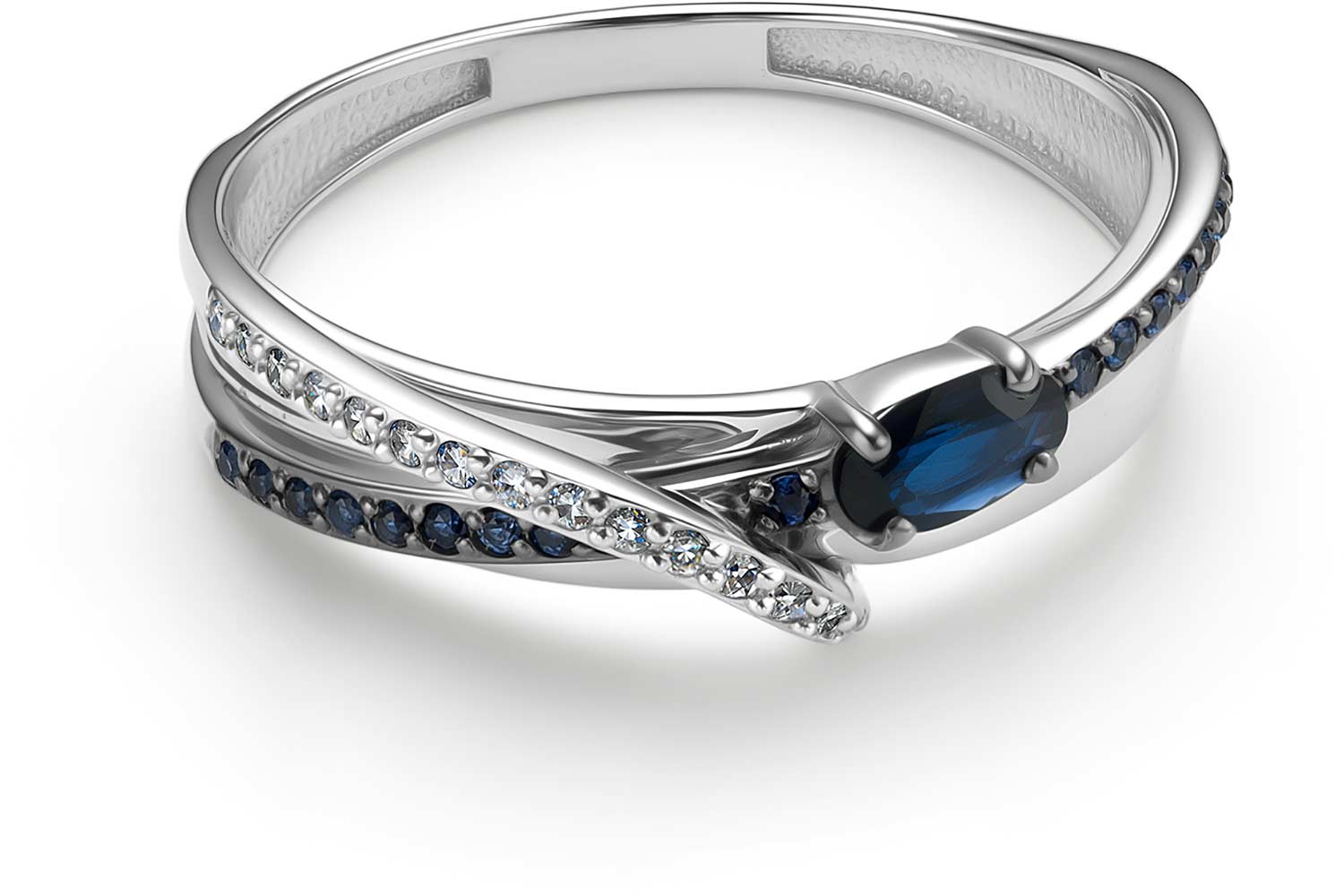 Кольцо из белого золота Алькор 16427-202 с сапфирами, бриллиантами
